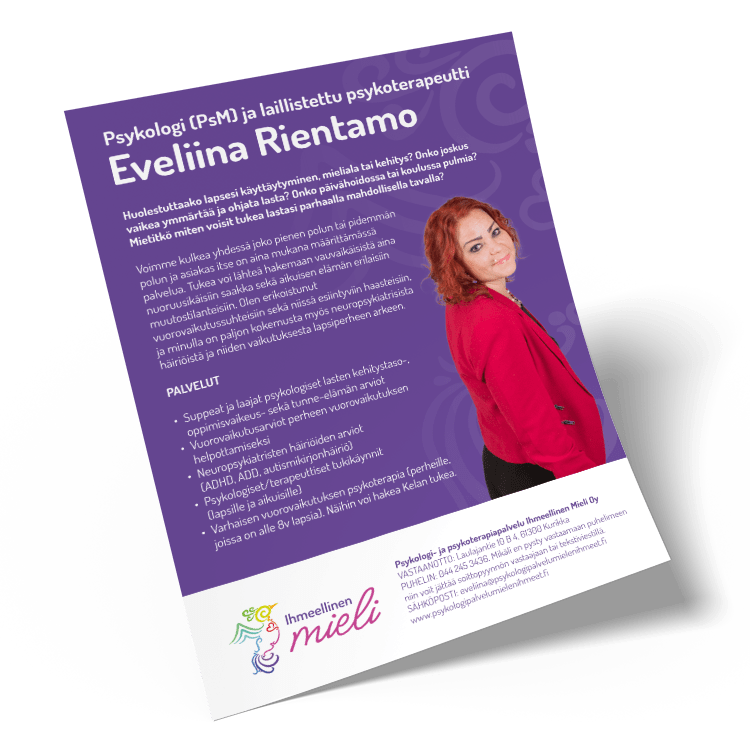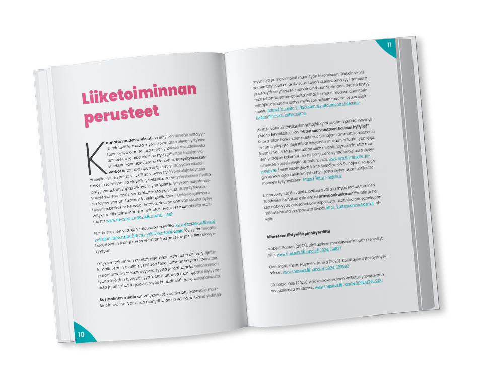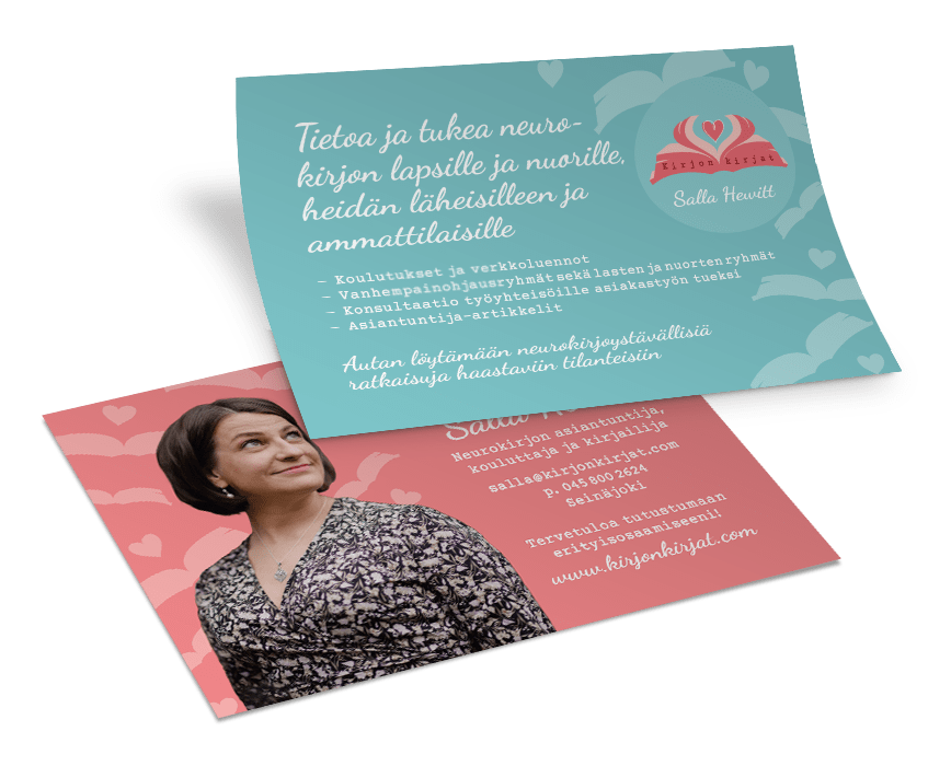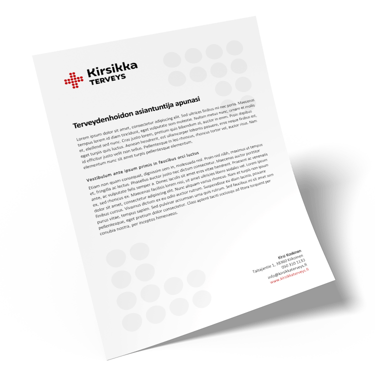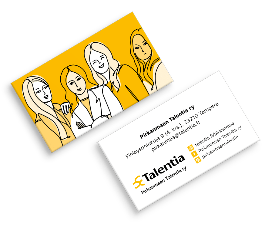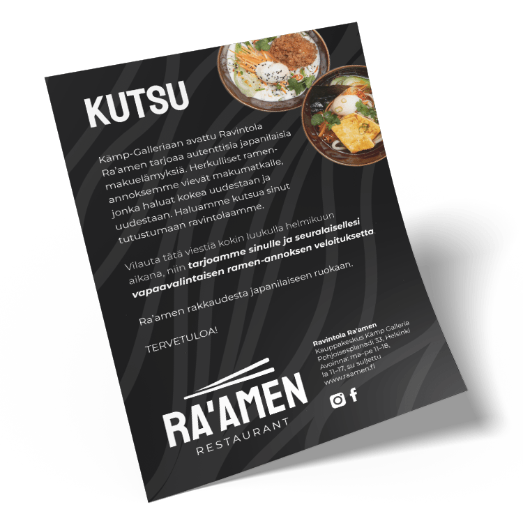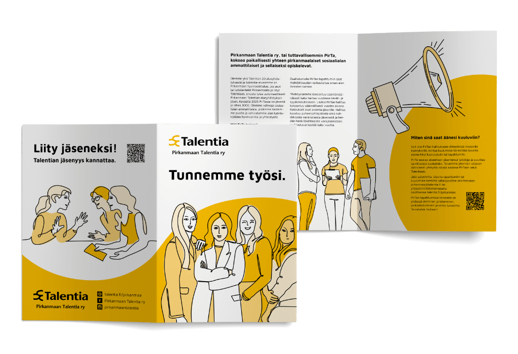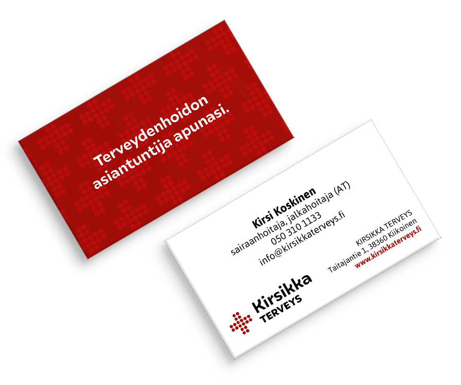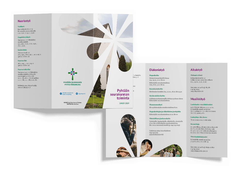 Esitteen, käyntikortin ja somepohjien graafinen suunnittelu.