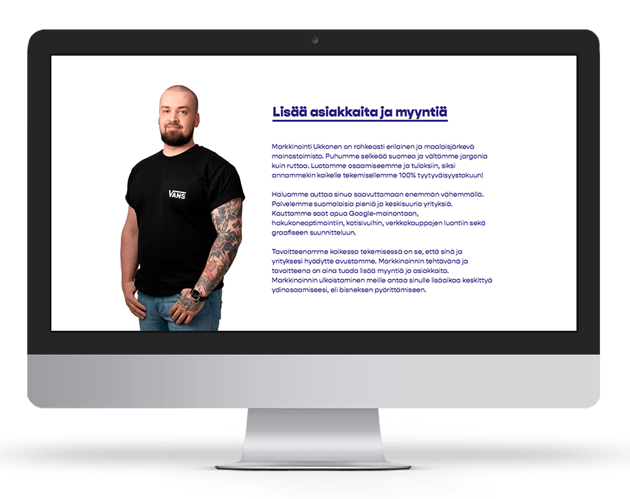 Verkkosivujen ulkoasun suunnittelu. Projektinjohto: Markkinointi Ukkonen.
