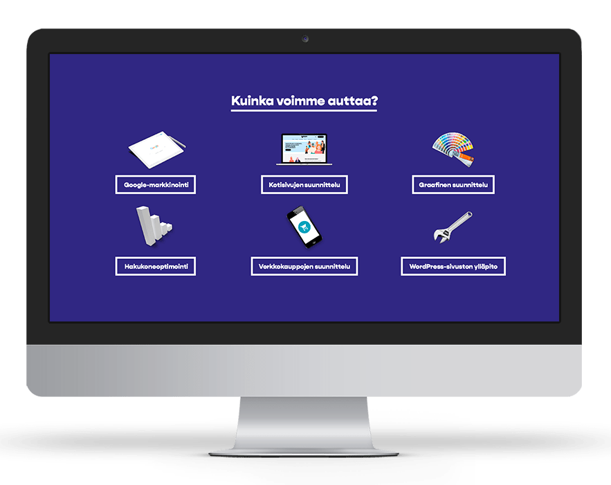Logon, visuaalisen ilmeen, verkkosivujen ulkoasun sekä somekansikuvan suunnittelu. Projektinjohto: Markkinointi Ukkonen.