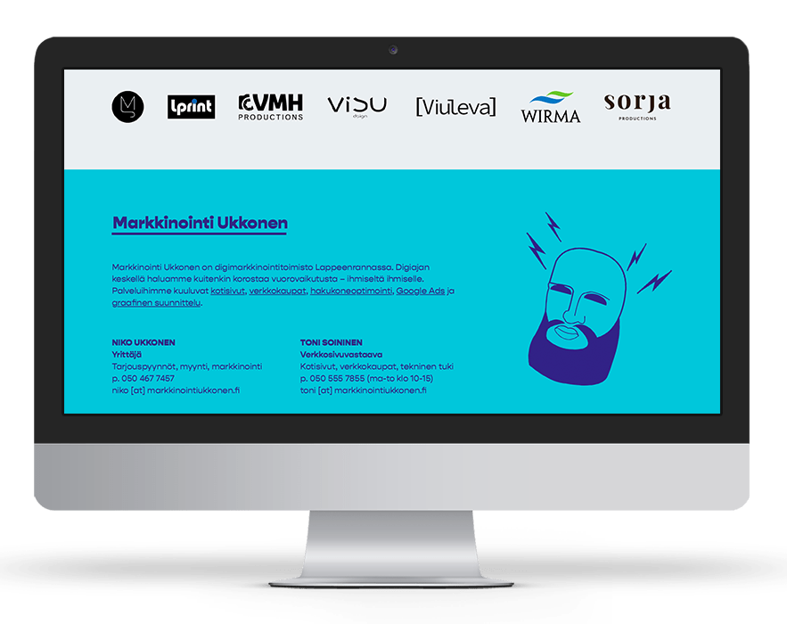 Logon, visuaalisen ilmeen ja verkkosivujen ulkoasun suunnittelu. Projektinjohto: Markkinointi Ukkonen.