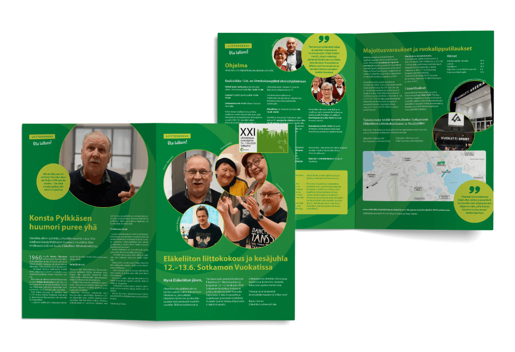 Markkinointimateriaalien graafista suunnittelua eri toimijoille.
